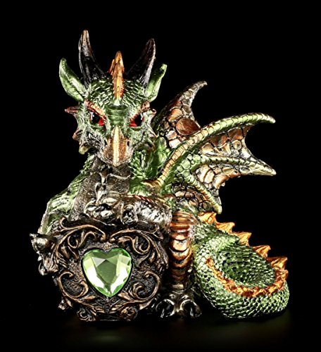 Figuren Shop GmbH Piccolo Verde Statuetta Drago Malachite con Cuore Acrilico Fantasy Decorazione Statua Draghi