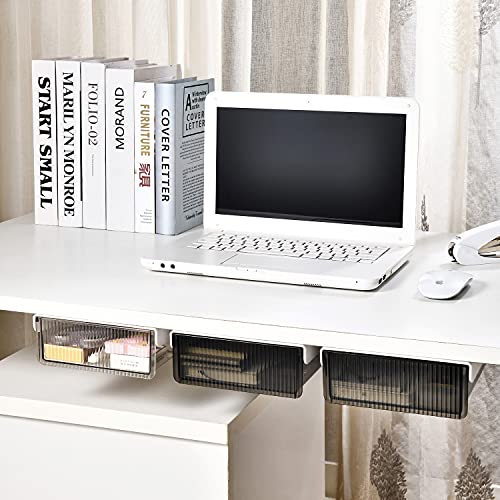 FiiMoo Cassetto Nascosto Autoadesivo, Organizer Cassetti Scrivania, Portaoggetti da Appendere, Cassetti Portaoggetti Sotto il Tavolo, Cassetta di Stoccaggio Cosmetico, per Ufficio, Casa,-trasparente