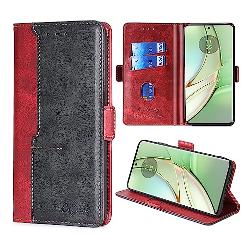 FiiMoo Custodia per Motorola Edge 40 Cover, Custodia Cover, Custodia per Cellulari, [Slot per Schede] [Chiusura Magnetica] [Funzione di Supporto] Cover Cellulari Custodia per Motorola Edge 40-Rosso