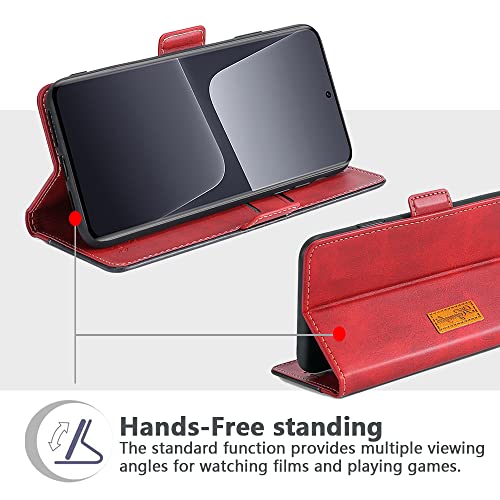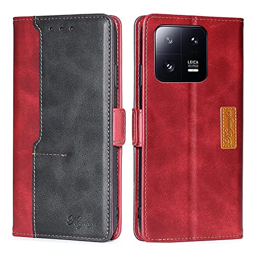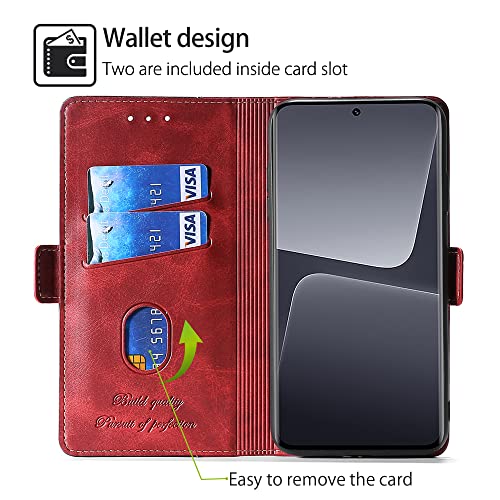 FiiMoo Custodia per Xiaomi 13 Pro, Cover, Custodia Flip, Cover a Libro, Custodia per Cellulari, [Slot per Schede] [Chiusura Magnetica], Flip Caso in Premium Portafoglio Custodia-Rosso