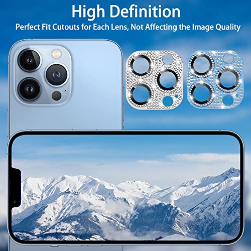 FiiMoo Vetro Temperato Fotocamera Protettiva Custodia Compatibile con iPhone 13 PRO/PRO Max, [2 Pezzi] Lente Camera Protettiva, Diamante Copriobiettivo Anti Graffio Cristallo (Argento + Blu)