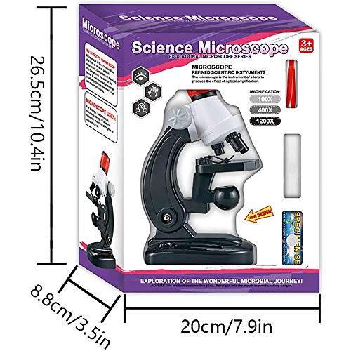 Fikujap Bambini Kit microscopio per Principianti LED 100X 400 X 1200 ingrandimento delle Ragazze dei Ragazzi Scienza Regalo dei Giocattoli,Nero