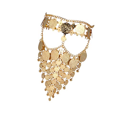 Fikujap Belly Dance Metal Veil Stage Night Gear, Face Mask Style Head Accessori Primo Viso Femminile Che Copre i Costumi per Festa a Mezza Faccia Dance e Festa del Ventre,d'oro