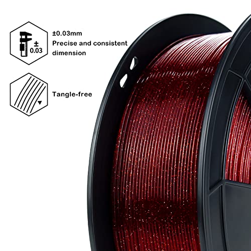 Filamento ZIRO PLA glitter 1,75 mm filamento stampante 3D PLA 1,75 mm serie di colori scintillanti 1 kg, precisione dimensionale +/- 0,05 mm,Rosso