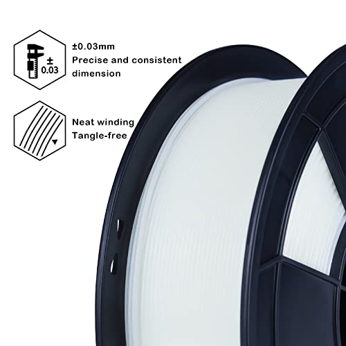 Precisione e consistenza dimensionale, tolleranza del diametro di +/-0,03 mm, peso netto del filamento di 1 kg.