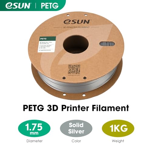 ESUN Filamento PETG 1.75mm, Filamento per Stampante 3D PETG, Precisione Dimensionale +/- 0.05mm, Bobina da 1kg (2.2 libbre) Filamento per Stampa 3D per Stampanti 3D, Argento Solido