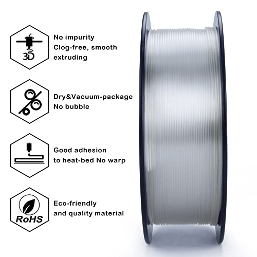 ZIRO PETG Filamento 1.75mm Filamento per Stampante 3D PETG 1.75 1kg, Precisione Dimensionale +/-0.03mm, Trasparente