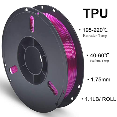 Filamento TPU viola 1,75 mm Filamento TPU flessibile per stampante 3D Precisione dimensionale +/- 0,03 mm, bobina da 0,5 kg, 1,75 mm