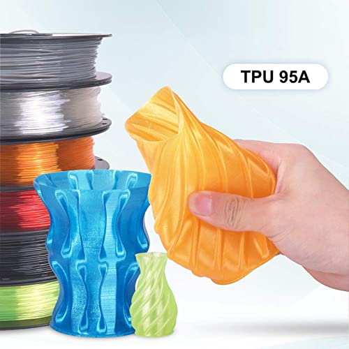 Il filamento flessibile in TPU è un materiale morbido ed elastico come la gomma. Ottimo per una varietà di progetti, come solette per scarpe, cinturini per orologi, custodie per telefoni.