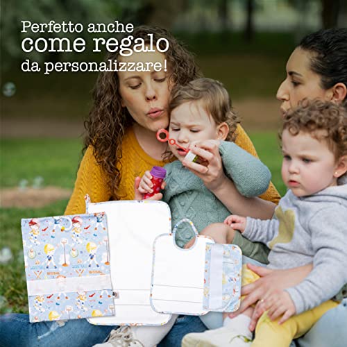 CONTENUTO - A casa riceverete un set asilo composto da quattro pezzi: un bavaglino asilo con elastico, un asciugamano asilo, un sacchetto per il cambio in cotone stampato con chiusura a coulisse con cordone e coprinodo e una busta porta tovagliolo/bavaglino. Nella confezione troverai uno schema d'ispirazione per il ricamo, per comporre il nome del tuo bambino o ricamare dei simpatici disegni. Questo set asilo da ricamare è molto resistente ai frequenti cicli di lavaggio, anche in lavatrice