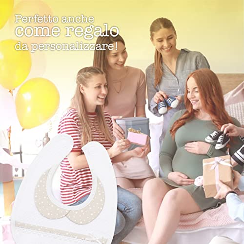 CONTENUTO - A casa riceverete un bavaglino in morbido tessuto motivo losanghe colore bianco con colletto in piquet di cotone stampa stelline su fondo beige e tasca in tela aida bianca, ideale da ricamare a punto croce con motivi infantili o con il nome del bebé. Se siete degli amanti del ricamo, questo bavaglino è ottimo per voi!