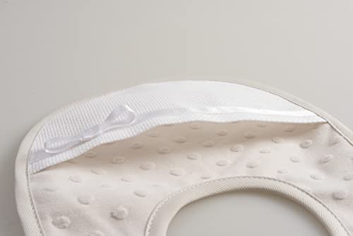 Filet - Bavaglino Realizzato in Morbido Tessuto Effetto Pois 3D con Tasca in Tela Aida da Ricamare, Fiocco in Raso, Chiusura con Laccetti, Ideale per i Neonati, Made in Italy, Colore Beige