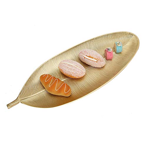 Filfeel Piatto da Portata per Dessert, Vassoio per Snack con Noci, Piatti di Frutta d'oro per la casa,(2317F-4001-Gold-Leaf-Small)