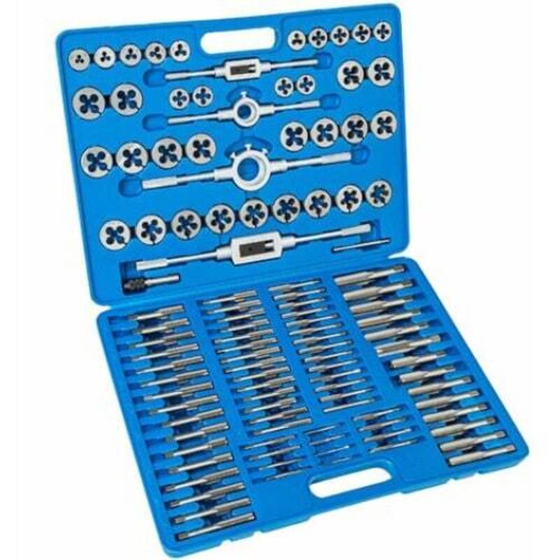 SET FILETTATURA PER TUBI, VITI, CONTENENTE 110 PZ UTILISSIMO PER I LAVORI DI BRICOLAGE E PUO' ESSERE IMPIEGATO ANCHE PER RIPRISTINARE FILETTURE ROVINATE IL KIT VIENE FORNITO IN UNA ROBUSTA VALIGETTA MISURE: 2x0.4 3x0.5 4x0.7 5x0.8 6x1.0 6x0.75 7x1,0 7x0.75 8x1.2 8x1.0 8x0.75 9x1.25 9x1.0 9x0.75 10x1.5 10x1.25 10x1.0 10x0.75 11x1.5 11x1.25 1 1x1.0 11x0.75 12x1.75 12x1.5 12x1.25 12x1.0 12x0.75 14x2.0 14x1.5 14x1.25 14x1.0 16x2.0 16x1.5 16x1.0 18x1.5