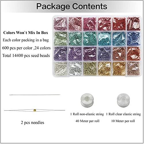 Bala&Fillic 11/0 Seed Beads 24 Colors About 14400 pezzi in scatola, piccoli branelli artigianali per la fabbricazione di orecchini, 11/0