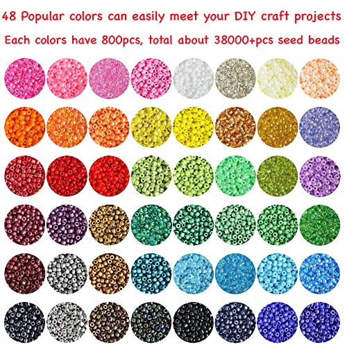 Bala&Fillic Dimensioni 2 mm 12/0 perline per la creazione di gioielli, 48 colori circa 38400 perline di vetro piccole artigianali con aghi per perline corda elastica per bracciali, orecchini, collane
