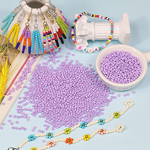 Bala&Fillic Perline di vetro 8/0 da 3 mm, circa 3600 pezzi/100 grammi in sacchetto, per realizzare bracciali, collane, orecchini (viola chiaro)