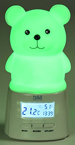 7 luce soffusa colori (rosso rubino, sonnenuntergangorange, neptungruen, mondlichtblau zartviolett, rosa forte, bianco perlato, con controllo della temperatura ambiente e umidità, luce può essere semplicemente cambiare automaticamente, manuale o sulla base della temperatura ambiente, accensione e spegnimento a tocco, con funzione sveglia, in cartone, ca. 20 x 10 cm
