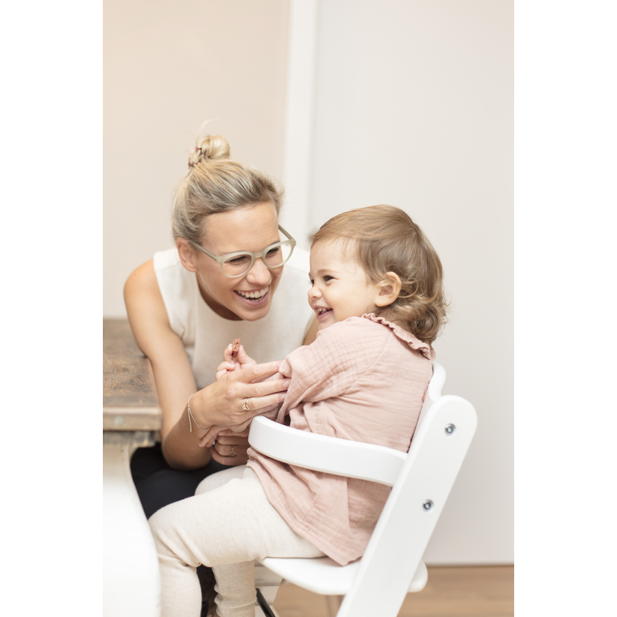 In legno di faggio Regolabile in altezza in 13 livelli, inclusa cintura e bracciolo anterriore removibili. Capacità max 80 kg Dimensioni: •