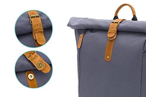 Spazio di archiviazione personalizzabile: moderno stile rolltop per una capacità fino a 25 litri. A seconda del carico di lavoro, la parte superiore può essere arrotolata e chiusa con l'elegante cinturino in vera pelle con magnete
