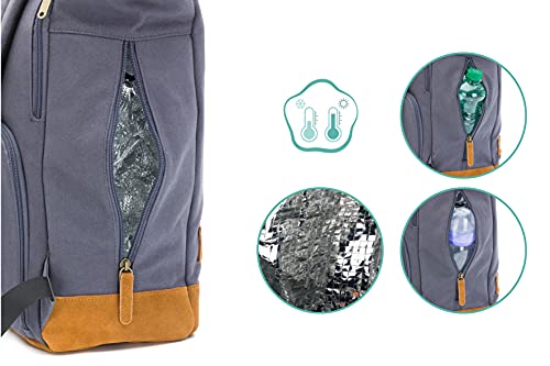 Fillikid Zaino avvolgente in tela - Borsa per pannolini con fasciatoio, fissaggio passeggino e molti scomparti - Zaino in cotone e pelle (grigio)