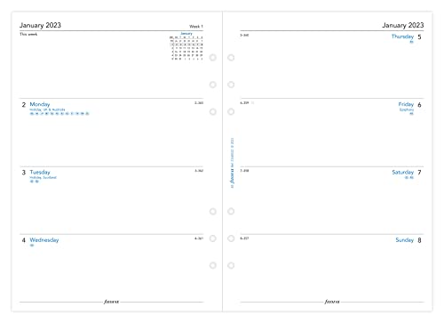 Filofax Agenda 2023, formato A5, settimana, su due pagine, colore: Bianco