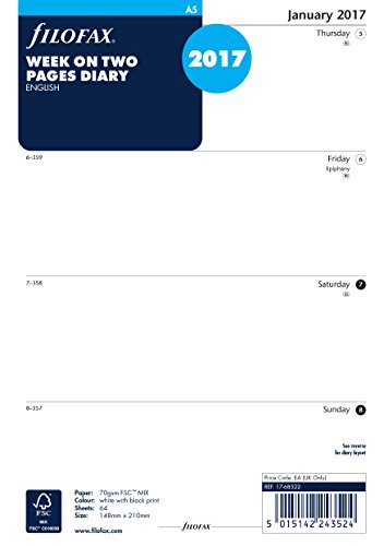Filofax, Agenda 2017 formato A5, visualizzazione settimanale su 2 pagine, in inglese