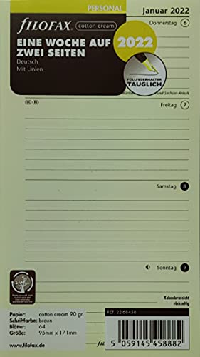 Filofax Personal 1 settimana su 2 pagine, cotone crema (tedesco) 2022