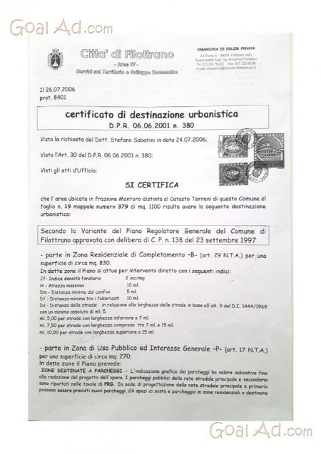 Lotto di terreno panoramico edificabile in zona di completamento urbanizzata, della superficie di 1.100 mq. per la costruzione di n. 2 ville singole e/o bifamiliari, oppure di un unico edificio, per un totale di mq. 550 di superficie utile lorda realizzabili da subito oppure, per investimento, in tempi diversi secondo la propria necessità.