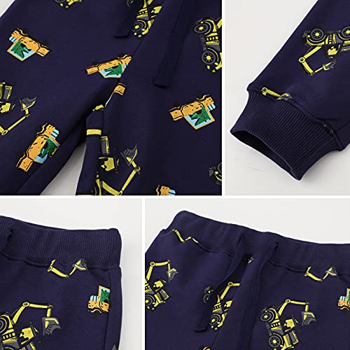 FILOWA Tute da Ginnastica Bambino Tuta Completini Sportivi Jogging Cotone Blu Scuro Escavatore Gru Ragazzo Scuola Maglieria Felpe Pantaloni Set Autunno Inverno Bambini e ragazzi 6-7 Anni,7T