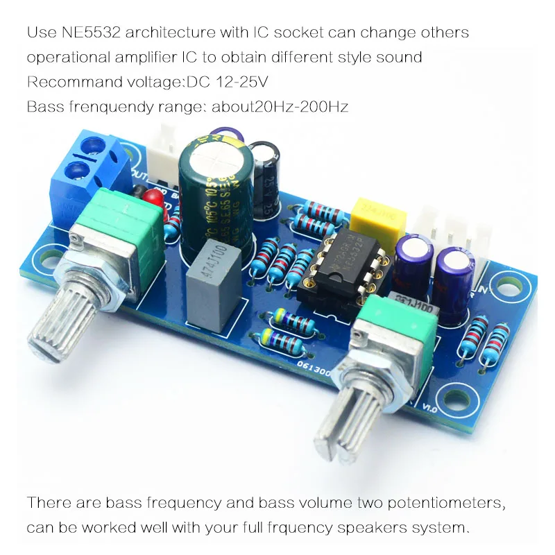Low Pass Filter Bass Subwoofer Pre-AMP Amplifier Board Dual Power NE5532 Low Pass Filter Bass Preamplifier DIY Kit