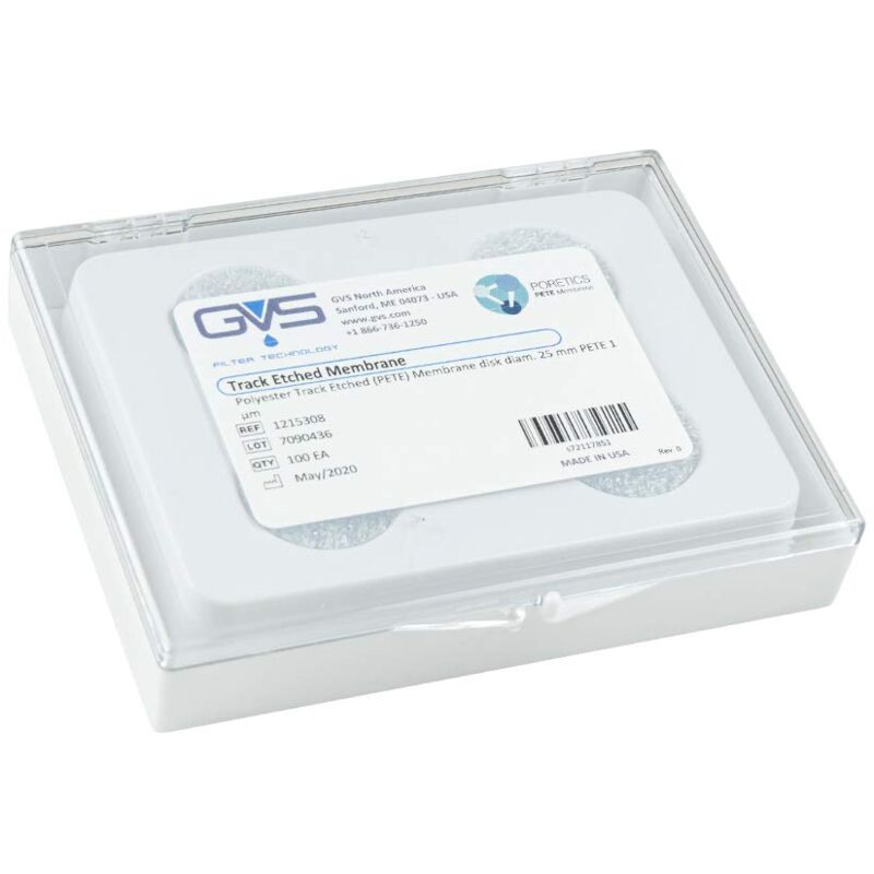 Descrizione La membrana GVS PETE è costituita da un sottile film di poliestere con un'elevata densità di resistenza ai solventi. È ideale per l'uso in analisi del sangue o filtrazione generale in cui possono essere utilizzati solventi chimicamente aggressivi. La membrana viene prodotta attraverso un processo di produzione proprietario in due fasi simile a quello della membrana PCTE. nella prima fase, il film di poliestere è esposto a particelle ioniche che passano attraverso il film, creano tracce in cui il polimero viene danneggiato. La pellicola con travi viene quindi esposta a una soluzione chimica che incide le tracce creando precisi pori cilindrici. La densità dei pori è controllata dal numero di tracce per unità di area e la dimensione dei pori è controllata variando la temperatura, la forza e il tempo di esposizione alla soluzione di incisione. Questo processo unico consente un maggiore controllo sulla dimensione e sulla densità dei pori per garantire che le proprietà fisiche