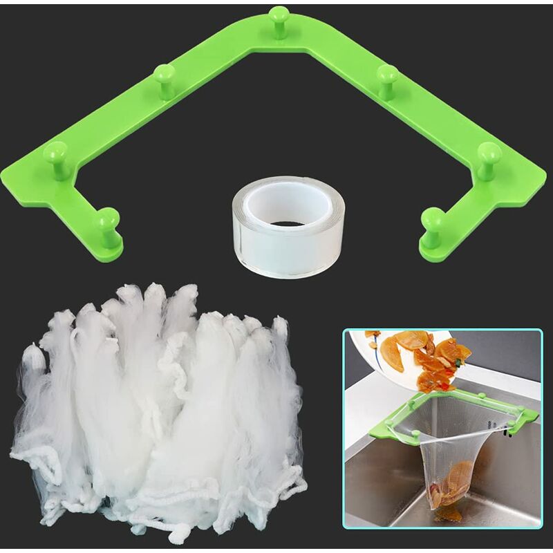 Contenuto: 1 supporto, 1 rotolo di nano colla e 100 sacchetti a rete. Tutti gli accessori sono forniti per un uso a lungo termine. Resistente e di buona qualità: la staffa è stabile e durevole e il filtro ha una buona elasticità e flessibilità. Forte capacità e forte supporto, che possono risolvere facilmente i tuoi problemi con gli avanzi di cucina. Filtro multifunzione: questo colino per lavello può essere utilizzato non solo per filtrare residui di cibo, capelli, avanzi di cucina, ecc. Carta e altro rifiuti, ma anche come cestello di raccolta per contenere frutta e verdura pulita e altri alimenti. Facile da installare: non richiede alcun attrezzo per forare, basta incollare il retro della staffa usando la nano colla, quindi incollalo sul lavello premendo con forza. Caratteristiche: Questo colino per lavello ti consente di filtrare delicatamente il lavello della cucina, senza dover raccogliere i rifiuti a mano. Il filtro ha migliori prestazioni di filtrazione ed è fondamentale per