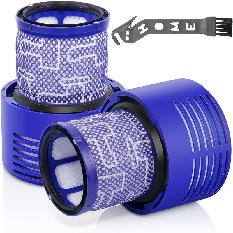 Filtro V10 per Dyson Compatibile con serie Dyson V10 Cyclone, V10 Absolute, V10 Animal, V10 Motorhead V10 Total Clean, SV12, Sostituisce le parti # 969082-01. Lotto di 2 filtri HEPA V10 per Dyson e 1 pennello per la pulizia gratuita, parte del filtro Dyson di riserva completamente compatibile, mantiene il tuo dispositivo Dyson in piena potenza. Lavabile e riutilizzabile: basta sciacquare con acqua pulita e lasciare asciugare completamente all'aria aperta prima di reidratare. Semplice, efficiente, facile da usare e pulito. consigliato di sostituire il filtro ogni 2-3 mesi per garantire che il tuo aspirapolvere funzioni in modo ottimale ed efficiente.