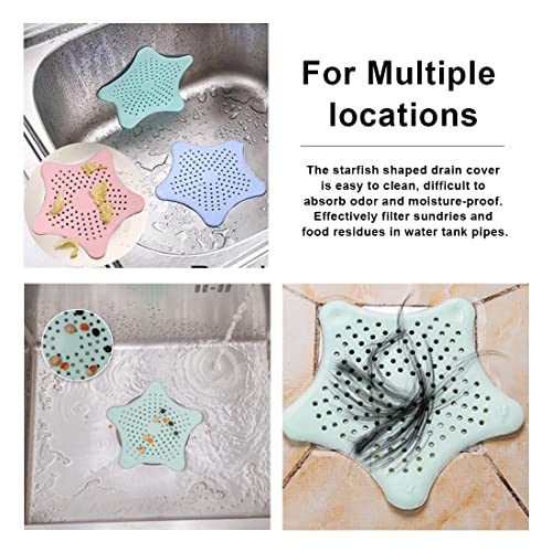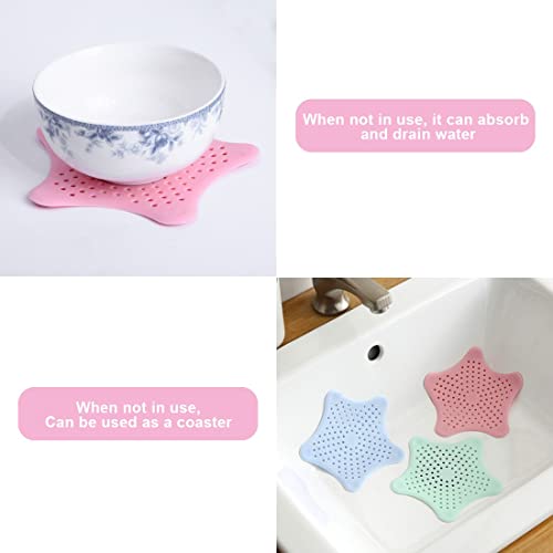 Filtri per capelli universali in silicone da 3 pezzi, filtri per capelli a stella con ventose per vasca da bagno, lavello da cucina e doccia (blu, verde e rosa)