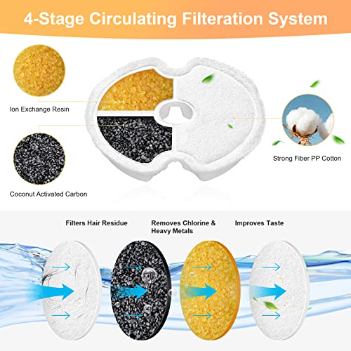 - Questo filtri ricambio fontanella per gatti di alta qualità può rimuovere l'acqua dura e renderla più morbida. Il filtro rotondo è fatto di tessuto non tessuto, carbone attivo di guscio di cocco e resina a scambio ionico e rete ABS. Fornisce acqua fresca e pulita per il tuo adorabile animale domestico.