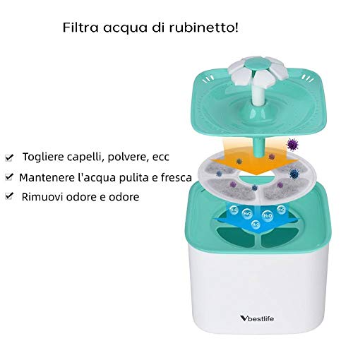 [Bere] - Il filtro a carbone attivo rimuove gli odori sgradevoli o il gusto nell'acqua degli animali domestici e lo rende più fresco.