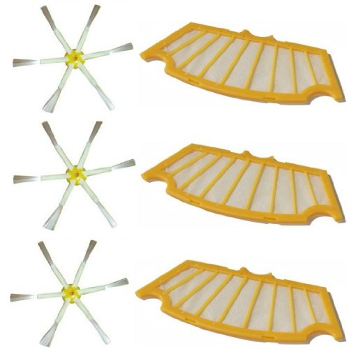 3 FILTRI DI RICAMBIO GIALLI PIATTI CLASSICI + 3 SPAZZOLE LATERALI A 6 BRACCIA COMPATIBILI PER IROBOT ROOMBA SERIE R3 500 510 521 530 531 532 534 535 536 540 550 551 555 560 562 563 564 PET 565 570 572 577 580 581 590 11702 80501 80601 GD-Roomba-500 SP530