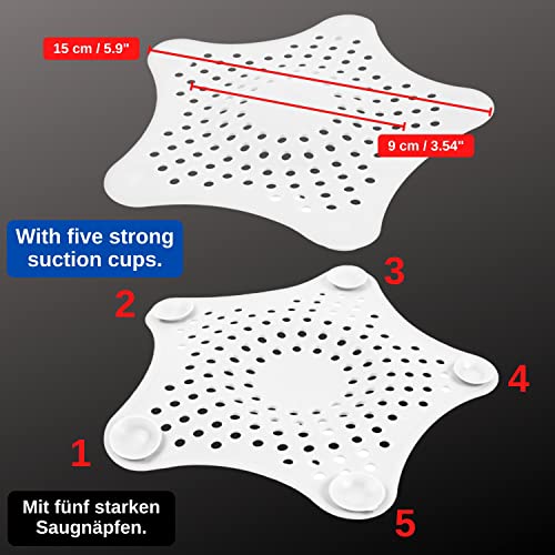 Filtri in TPR per scarico del lavello, 15,5 x 13,5 cm, 4 pezzi, bianco, per l'acquaio della cucina, Forte tenuta con 5 ventose, Libera gli scarichi dai residui di cibo, Filtri per vasca da bagno sieve