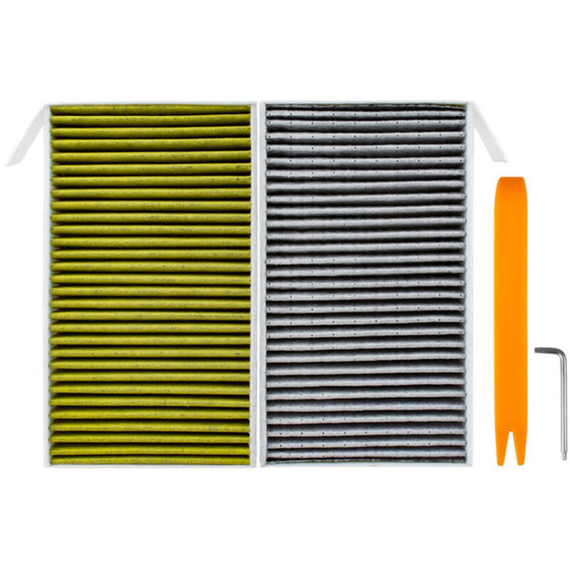Caratteristiche: Questo filtro dell'aria puo assorbire in modo piu efficace particelle e gas nocivi, mantenendo un ambiente pulito e sano. Progettato con uno strato di carbone attivo situato all'interno del materiale filtrante, alta capacita e forte potere filtrante. Sostituire ogni 8-12 mesi o ogni 12.000-15.000 miglia. Puo filtrare fino al 99% di polvere, PM2,5, formaldeide, toluene, gas, polline, particelle dannose, ecc., Mantenendo un'aria piu pulita per conducenti e passeggeri. Realizzato in materiale di alta qualita, piu traspirante e resistente, offre una maggiore capacita di filtrazione e una maggiore durata. Facile da installare e rimuovere senza danneggiare la tua auto. Sostituzione per Tesla Model 3. Specifiche: Colore: giallo Materiale: tessuto in fibra Formato del pacchetto: 25 * 17 * 7 cm Peso della confezione: 335 g Elenco dei pacchetti: 2 * Filtro aria per auto