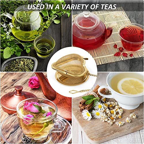 Filtro da Tè in Acciaio Inossidabile Colino da Tè a Forma di Cuore con Leccarda Catena Infusore Tè per Tè Sfuso 2 Pezzi Oro
