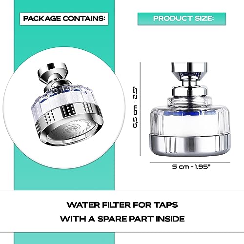 FILTRO RUBINETTO AIREADOR Il nostro filtraggio acqua rubinetto ha un gran numero di fori ultra sottili che producono un flusso d'acqua liscio con bolle fini ed è resistente agli schizzi. Con questo sistema puoi lavarti e massaggiare delicatamente il viso e le mani. Inoltre, risparmia acqua mantenendo la stessa pressione dell'acqua.