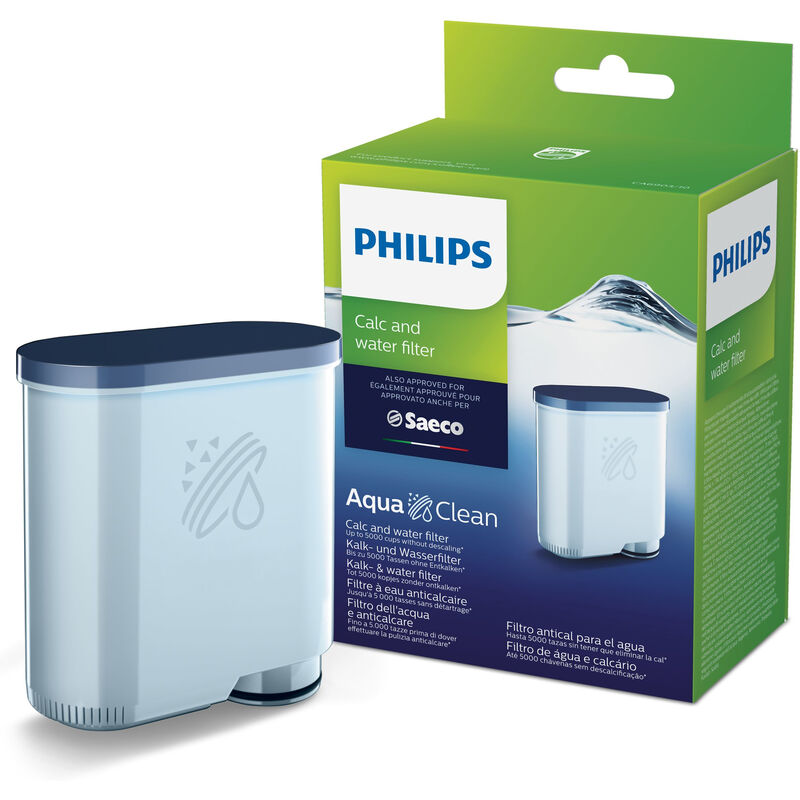 Philips Stesso filtro anticalcare e acqua di CA6903/00 Sfrutta acqua pura per un caffè dal sapore ottimale grazie all'innovativo filtro per acqua AquaClean. AquaClean filtra l'acqua per assicurare un aroma intenso e ridurre la necessità di rimuovere il calcare dalla tua macchina prevenendo la formazione di quest'ultimo.
