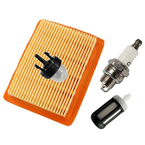 Huri Filtro aria + candela di accensione + Primer Pompa + filtro benzina adatta per Stihl FS120 FS200 FS250 FS300 FS350 FS400 FS450 BT120 BT120 C FR350 FR450 # 4134 1410 300