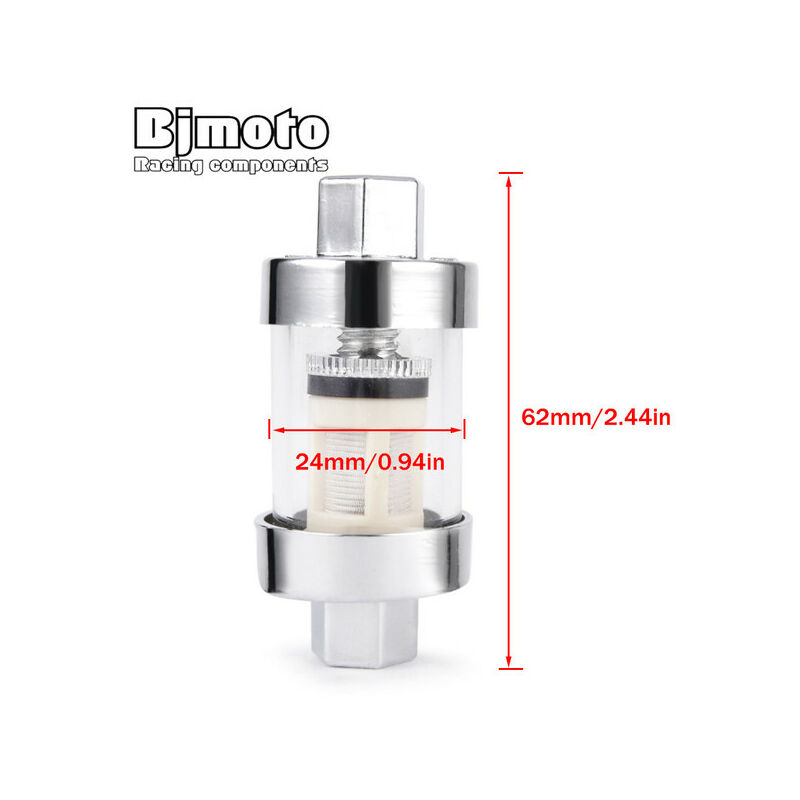 Chrome Reale di Vetro di Ri-Pulibile Filtro Del Carburante In Linea Materiale: Alluminio con vetroTubo di raccordo formato: 1/4 '', 5/16'', 3/8 ''(6MM, 8MM;