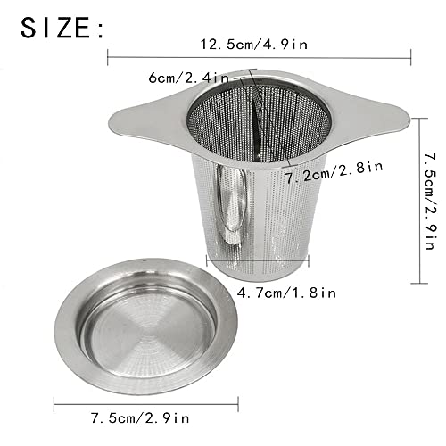Filtro Tè con Coperchio, 2 Pezzi Filtro Tè Doppio Manico, Colino Tè Acciaio Inossidabile con Coperchio, Filtro Tè Acciaio Inox Doppio Manico, per Teiere, Tazze, Tazze per Tè e Caffè in Foglie Sfuse