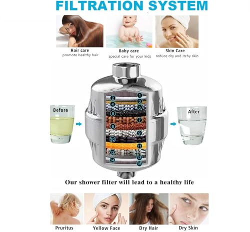 PROCESSO UNICO 15 fasi: nuovo filtro doccia FORMULA multi-stadio con KDF-55 migliorato purifica l'acqua della doccia ed elimina i metalli pesanti, ecc. La vitamina C nutre la pelle con idratanti naturali e riduce al minimo la secchezza della pelle.