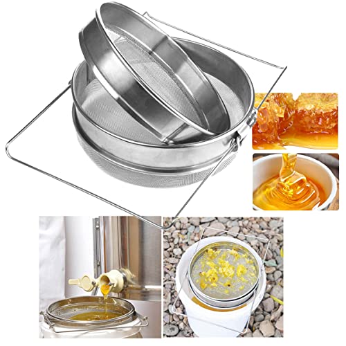 Filtro Miele in Acciaio Inox 24 cm,Doppio Filtro per Miele con Supporto Stabile,Attrezzatura per Apicoltura,Doppio Setaccio Miele Fliter Apicoltura Miele Filtrazione Attrezzature Strumenti