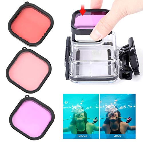 Kit Filtro per Obiettivo Subacqueo, Filtro per Obiettivo Subacqueo Viola/magenta/rosso, Confezione da 3 Accessori per Filtro per Immersione per Action Cam Gopro 9, per la Correzione del Colore
