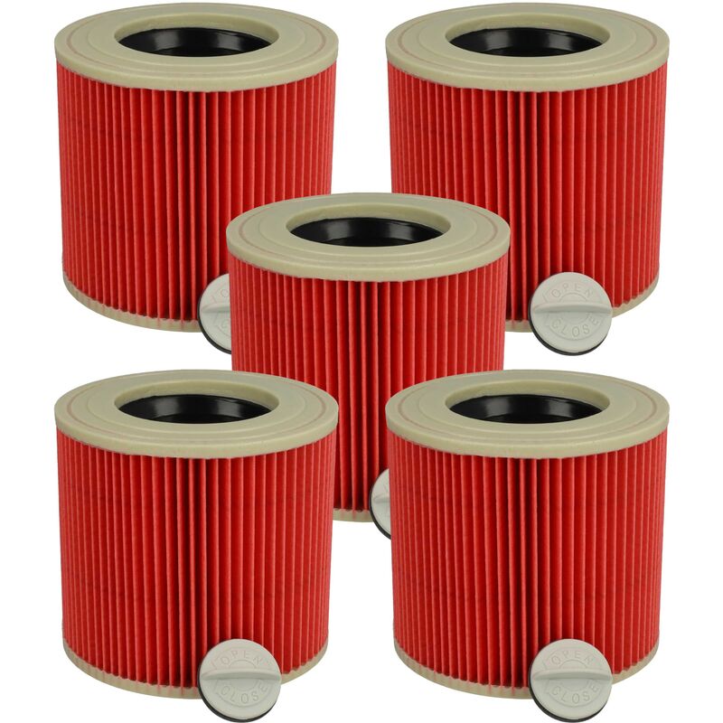 Vhbw - the clever way Set di 5x filtro cartucce per aspirapolvere, aspiratore umido/secco e aspiratore industriale - Facile e veloce sostituzione - Cambiando regolarmente il filtro è possibile ottenere un'aspirazione più efficiente Questi filtri a pieghe di alta qualità sono l'accessorio perfetto per catturare polvere e sporco grossolano in casa, in garage o in officina. Per garantire una potenza di aspirazione ottimale e per prolungare la durata del proprio aspirapolvere, sostituire regolarmente i filtri. La precisa lavorazione dei filtri garantisce una facile e comoda sostituzione. Attenzione: il filtro protegge il motore e deve essere cambiato regolarmente. Se è molto sporco, il motore non viene più raffreddato a sufficienza e la potenza di aspirazione dell'aspirapolvere si riduce notevolmente. CONTENUTO DELLA SPEDIZIONE: - 5x filtro a pieghe SPECIFICHE TECNICHE: - Classe filtro: F9 - Diametro esterno: 12,2 cm - Diametro interno: 8,1 cm - Altezza: 11,3 cm - Colore: rosso - Lavabile